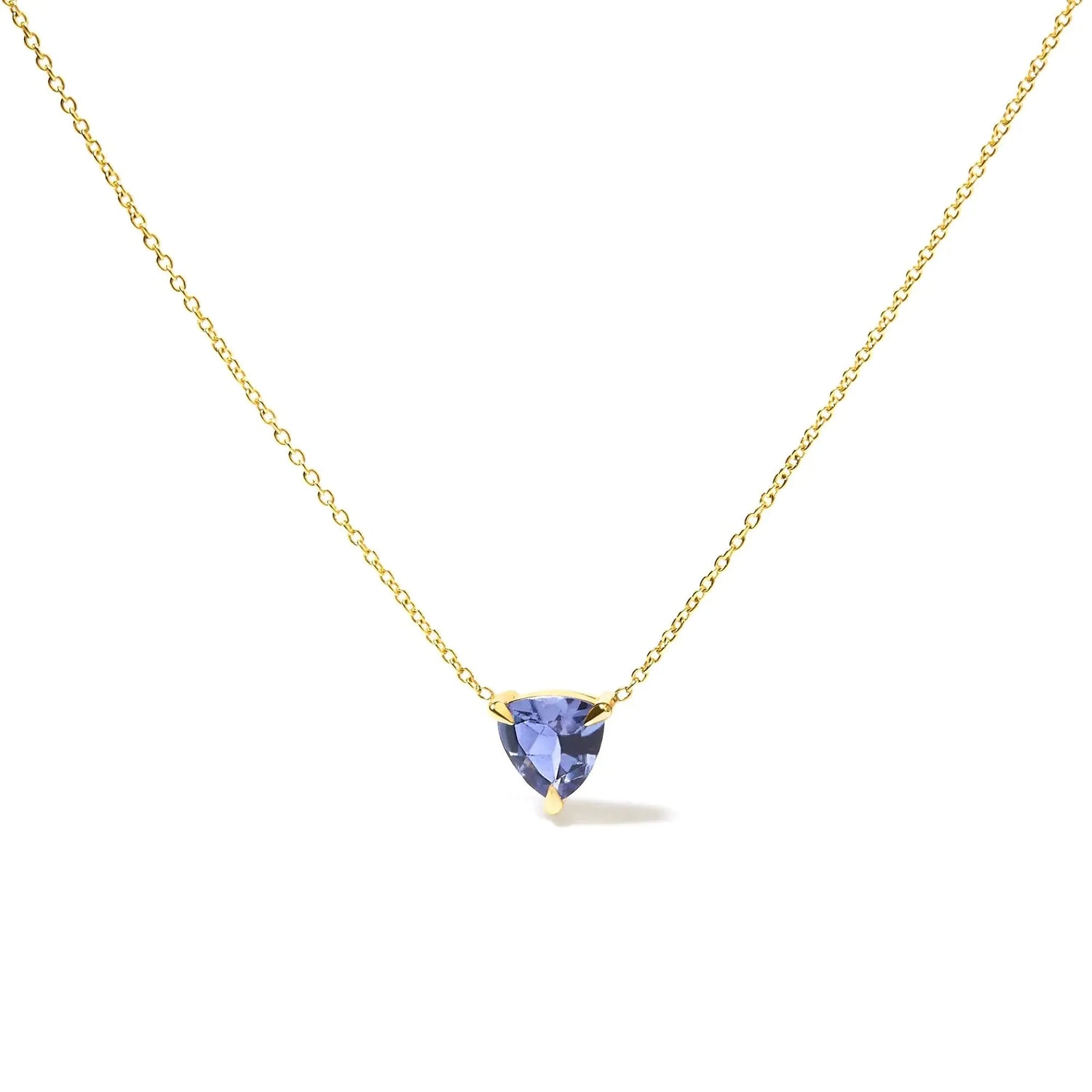 14k Yellow Gold 3-Prong Martini Set Blue Tanzanite Trillion Solitaire 18" Pendant Necklace
