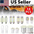 14Pcs T10 36mm LED Interior Car Accessories Kit Map Dome License Plate Lights