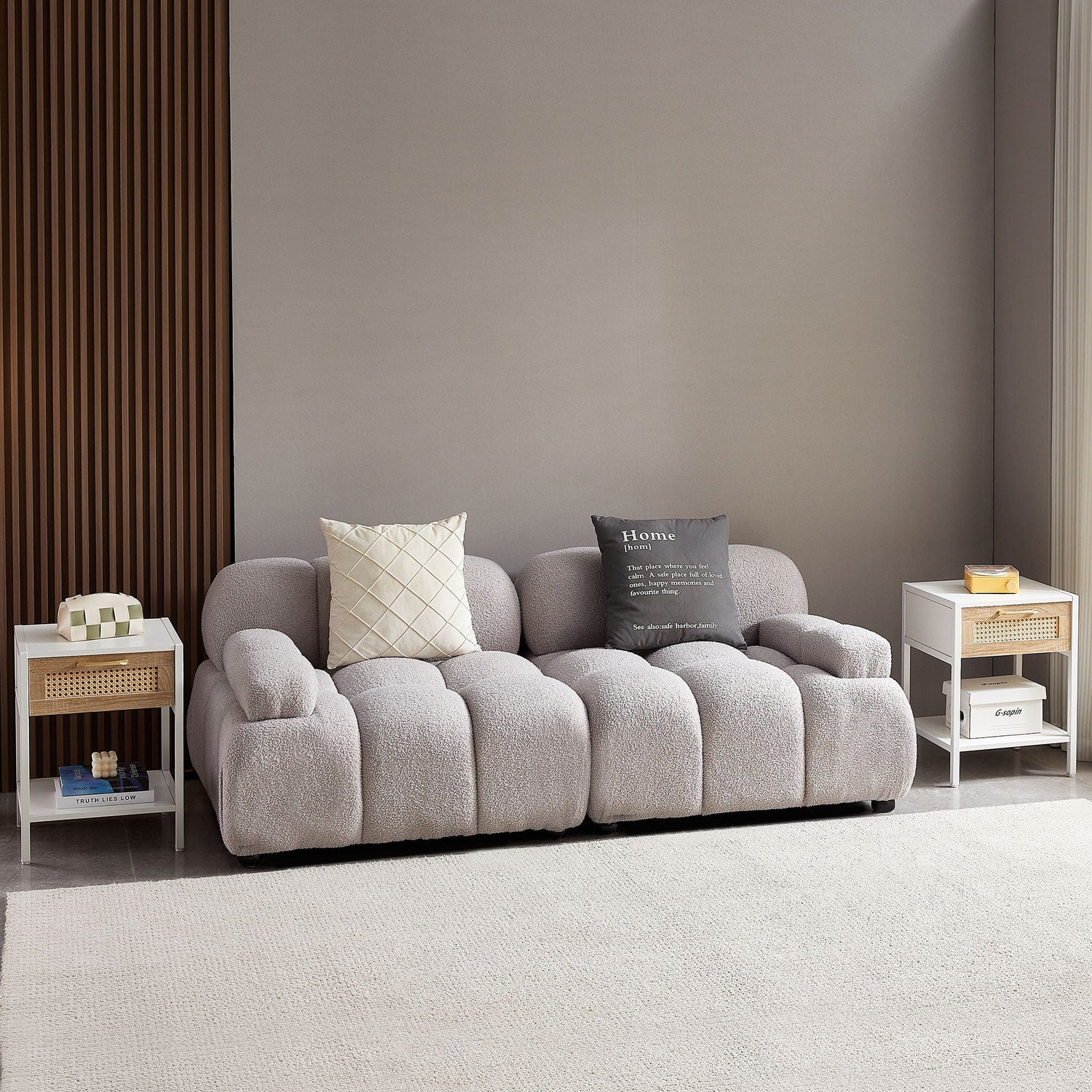 15.74" Rattan End Table With Drawer, Modern Nightstand, Metal Legs, Side Table For Living Room, Bedroom (Set of 2) - White