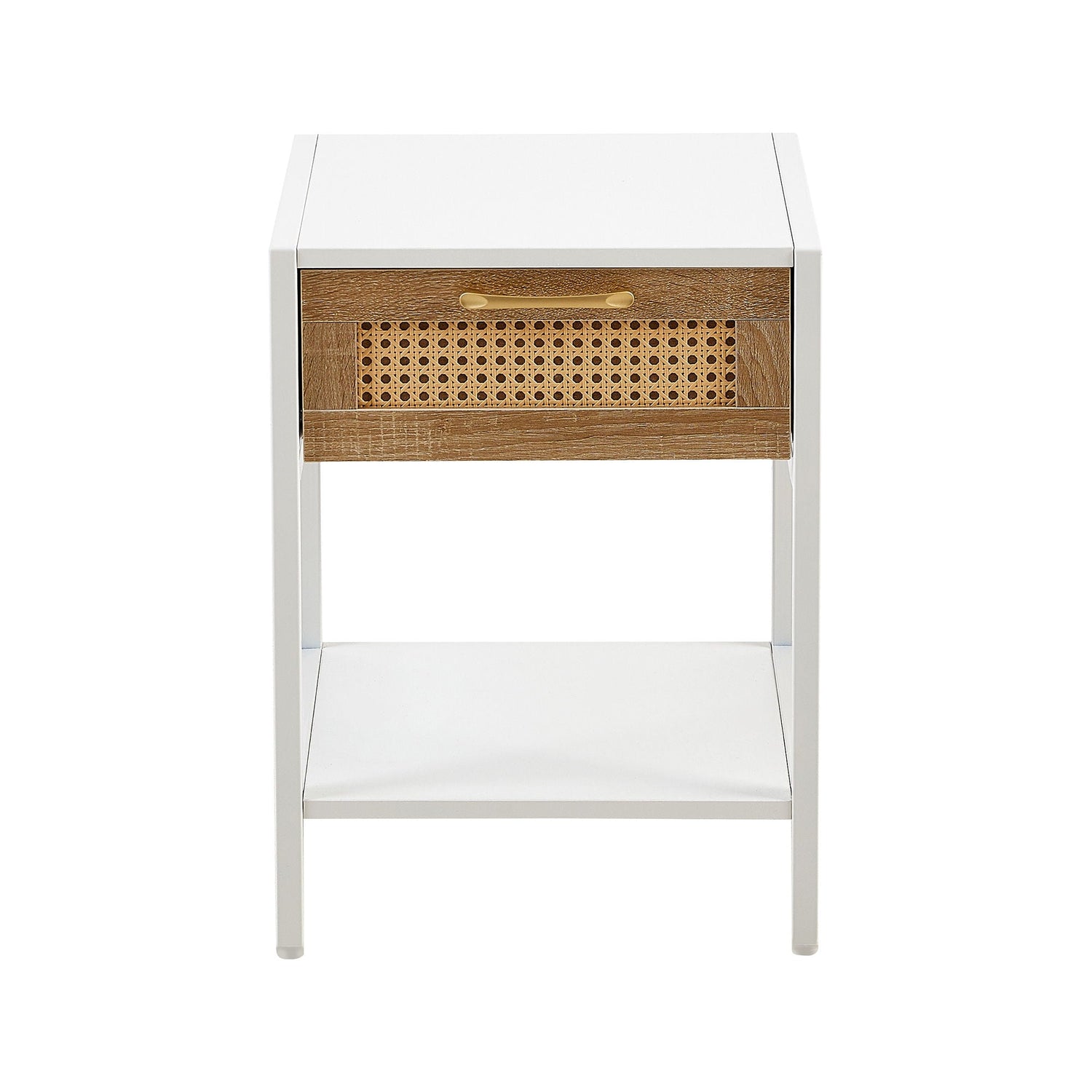 15.74" Rattan End Table With Drawer, Modern Nightstand, Metal Legs, Side Table For Living Room, Bedroom - White