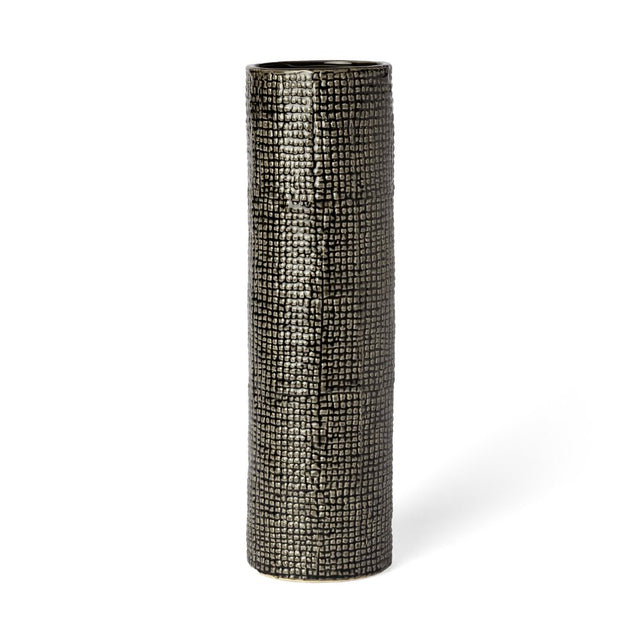 15" Black And Gold Abstract Cylinder Ceramic Table Vase is backordered and will ship as soon as it is back in stock.