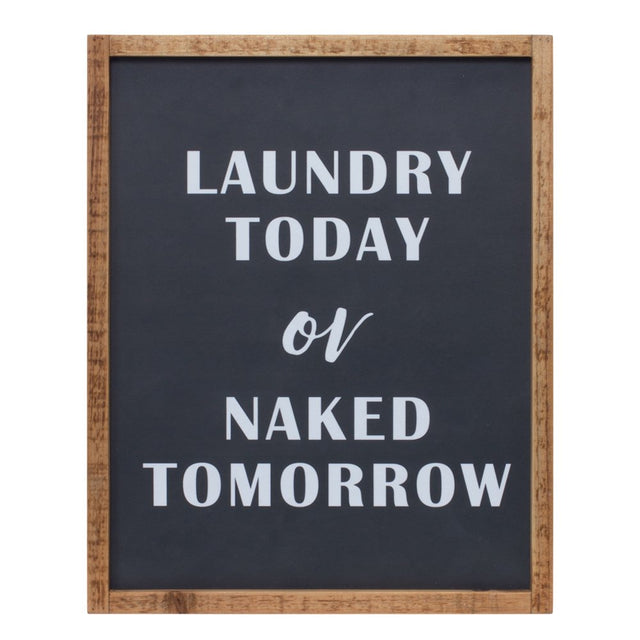 15" X 12" Black And White Laundry Today or Naked Tomorrow Wood Wall Decor