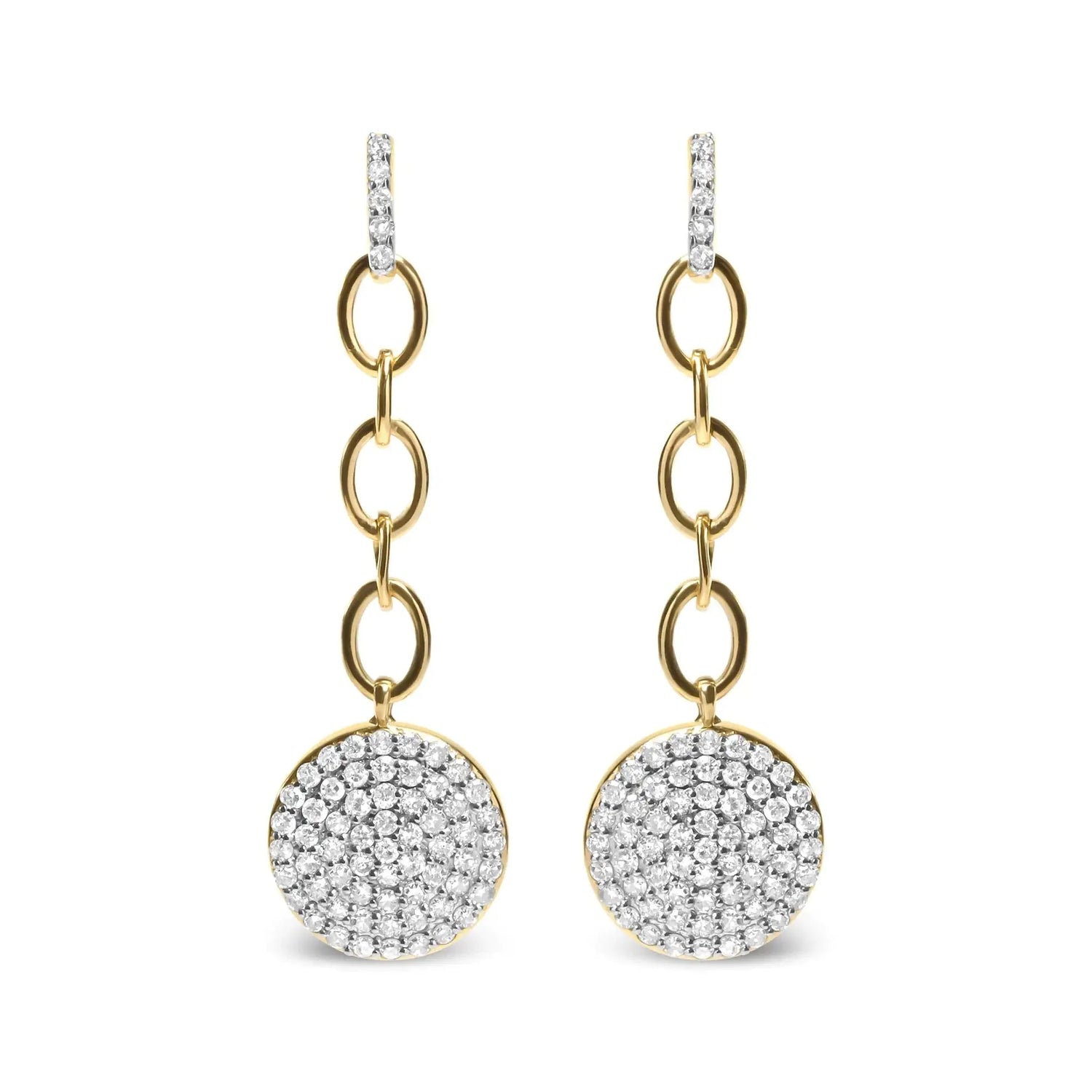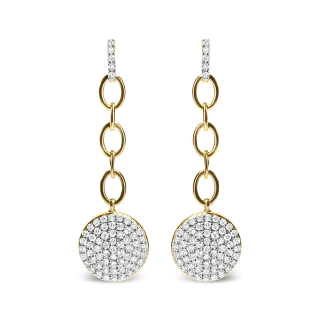 Dazzle and delight with these stunning diamond chain dangle earrings, crafted from 18K yellow gold plated .925 sterling silver. The 132 round diamonds that make up the 1.0 cttw composite cluster radiate a brilliant sparkle, thanks to their impressive I-J color and I1-I2 clarity, and are perfectly set in prongs to ensure maximum light reflection. The delicate chain design adds a touch of glamour and sophistication to these earrings, making them a perfect accessory for any formal occasion or everyday wear. The secure screw on finding ensures a comfortable and worry-free fit, allowing you to wear them with confidence. These earrings make a perfect gift for someone special or a treat for yourself. Their timeless design and quality craftsmanship will ensure they become a cherished addition to your jewelry collection for years to come. Don't miss out on the opportunity to add these breathtaking diamond chain dangle earrings to your repertoire.
