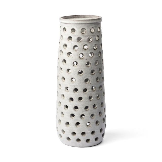 19" White Polka Dots Ceramic Cylinder Table Vase