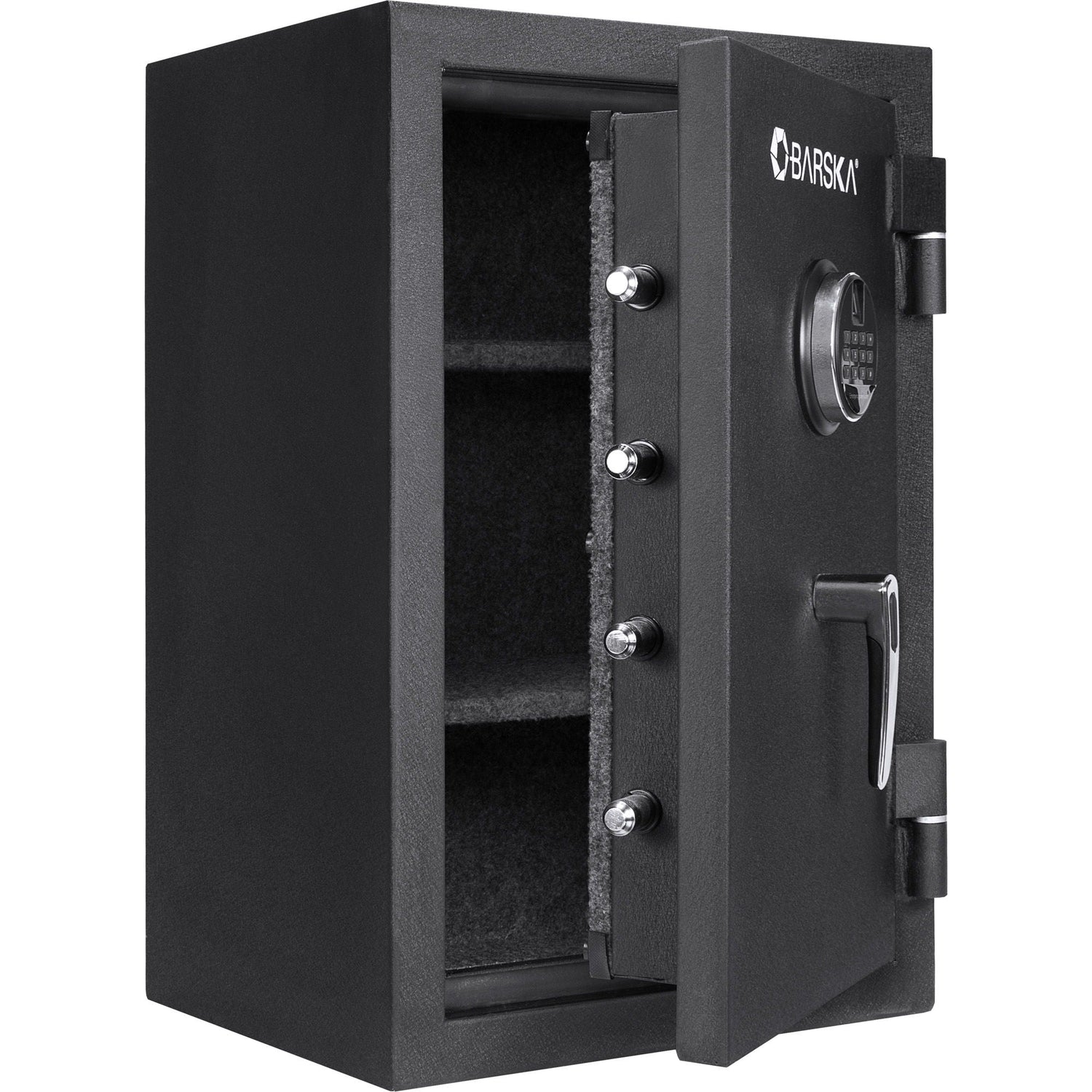 - High Security: Constructed with thick steel, the safe features 4 solid steel live bolts and 4 deadbolts. It comes with programmable alarms and access modes, ensuring your valuables are protected with maximum security.