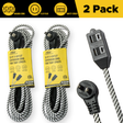 2-Pack 12ft Flat Extension Cord with Safety Covers, Braided Long Extension Cord with Flat Plug, 3-Outlet Power Strip, 16AWG, 1625W, ETL Listed
