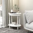 2-Tier Oval Side Table with Storage Shelf and Solid Wood Legs-White
