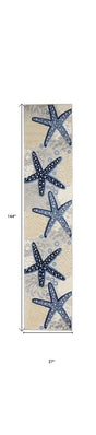 12' Blue And Gray Nautical Indoor Outdoor Runner Rug