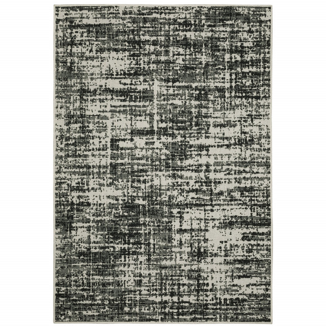 2' X 4' Beige and Black Abstract Stain Resistant Indoor Outdoor Area Rug