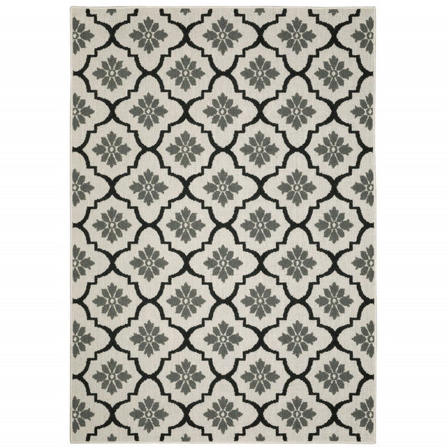 2' X 4' Beige and Black Geometric Stain Resistant Indoor Outdoor Area Rug