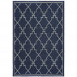 2' X 4' Blue and Ivory Geometric Stain Resistant Indoor Outdoor Area Rug