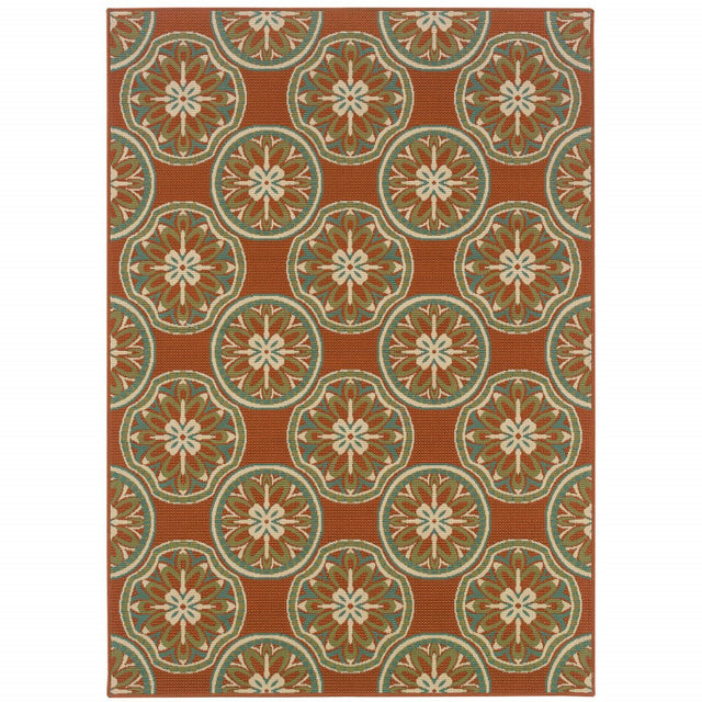 2' X 4' Brown and Ivory Floral Stain Resistant Indoor Outdoor Area Rug