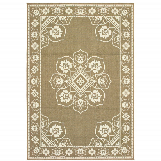 2' X 4' Tan Oriental Stain Resistant Indoor Outdoor Area Rug
