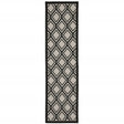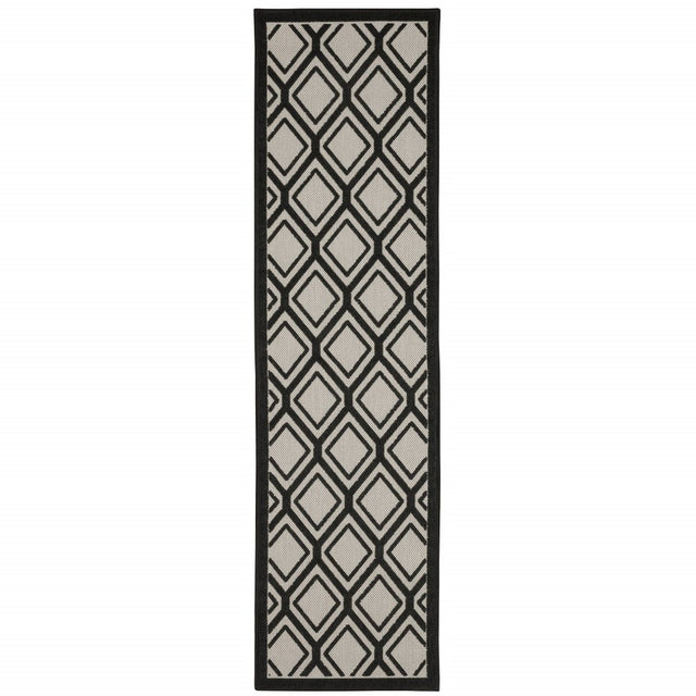 2' X 7' Beige and Black Geometric Stain Resistant Indoor Outdoor Area Rug