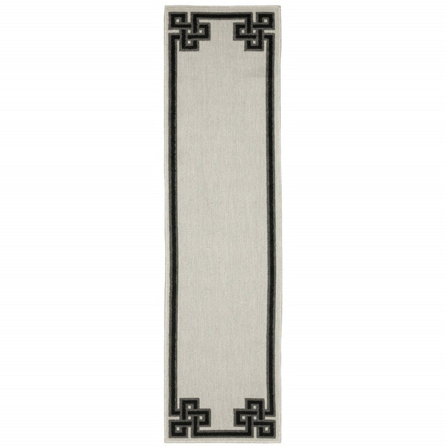 2' X 7' Beige and Black Stain Resistant Indoor Outdoor Area Rug