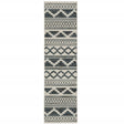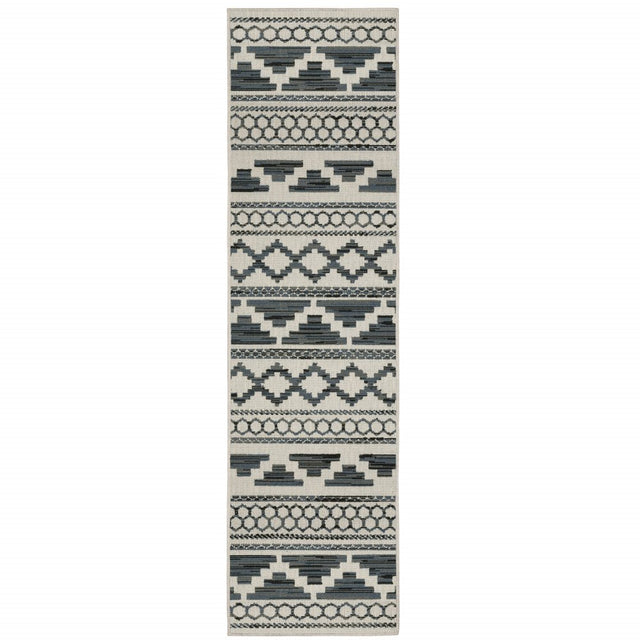 2' X 7' Blue and Beige Geometric Stain Resistant Indoor Outdoor Area Rug