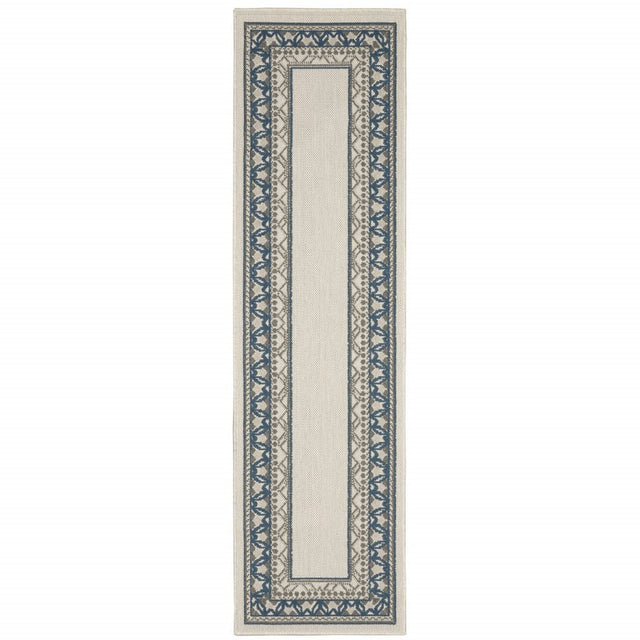2' X 7' Blue and Beige Stain Resistant Indoor Outdoor Area Rug
