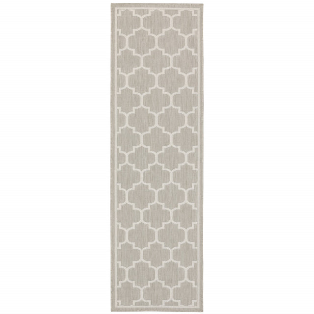 2' X 7' Gray and Ivory Geometric Stain Resistant Indoor Outdoor Area Rug