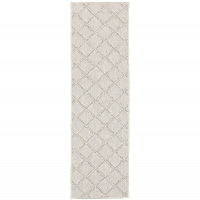 2' X 7' Gray and Ivory Geometric Stain Resistant Indoor Outdoor Area Rug
