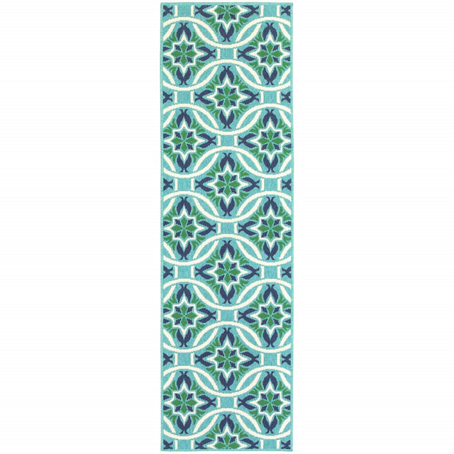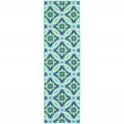 2' X 8' Blue and Green Geometric Stain Resistant Indoor Outdoor Area Rug