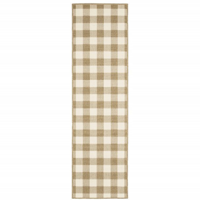 2' X 8' Gray and Ivory Geometric Stain Resistant Indoor Outdoor Area Rug