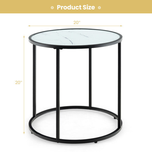 20" Glass End Table with Metal Frame and Faux Marble Glass Top-Black & White - Black & White is backordered and will ship as soon as it is back in stock.
