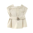 The top is a sleeveless bodice adorned with ruffle detailing that adds a touch of elegance, while the accompanying skirt flows gracefully, giving you a chic silhouette that is sure to turn heads. Crafted from high-quality polyester fabric, this outfit is not only stylish but also durable and easy to care for.