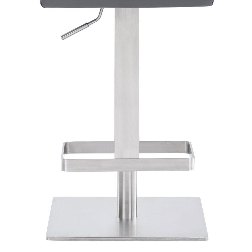 24" Gray and Silver Faux Leather and Iron Adjustable Height Swivel Bar Chair