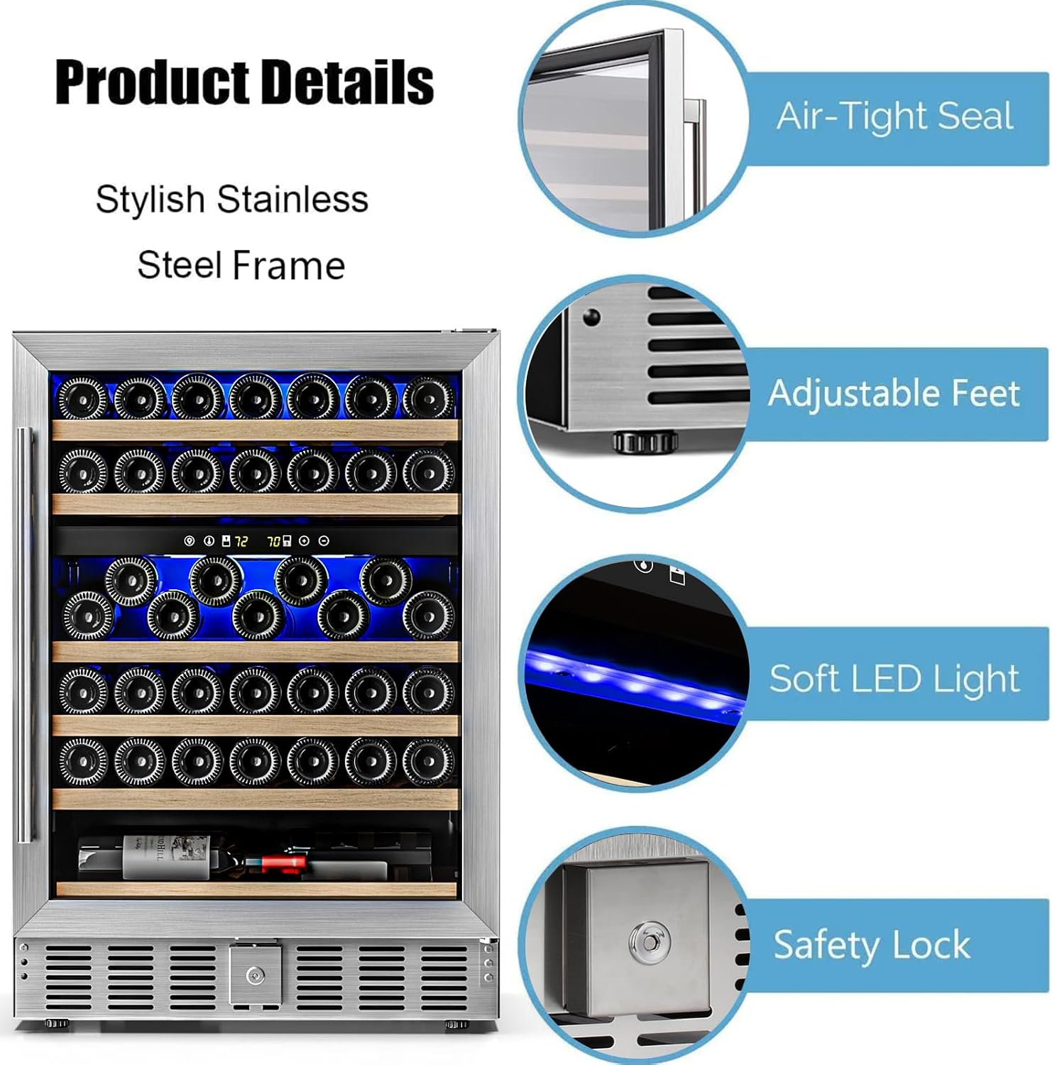 Quiet & Low Vibration: With the advanced cooling system, your wine can age and settle with low vibration and low noise.