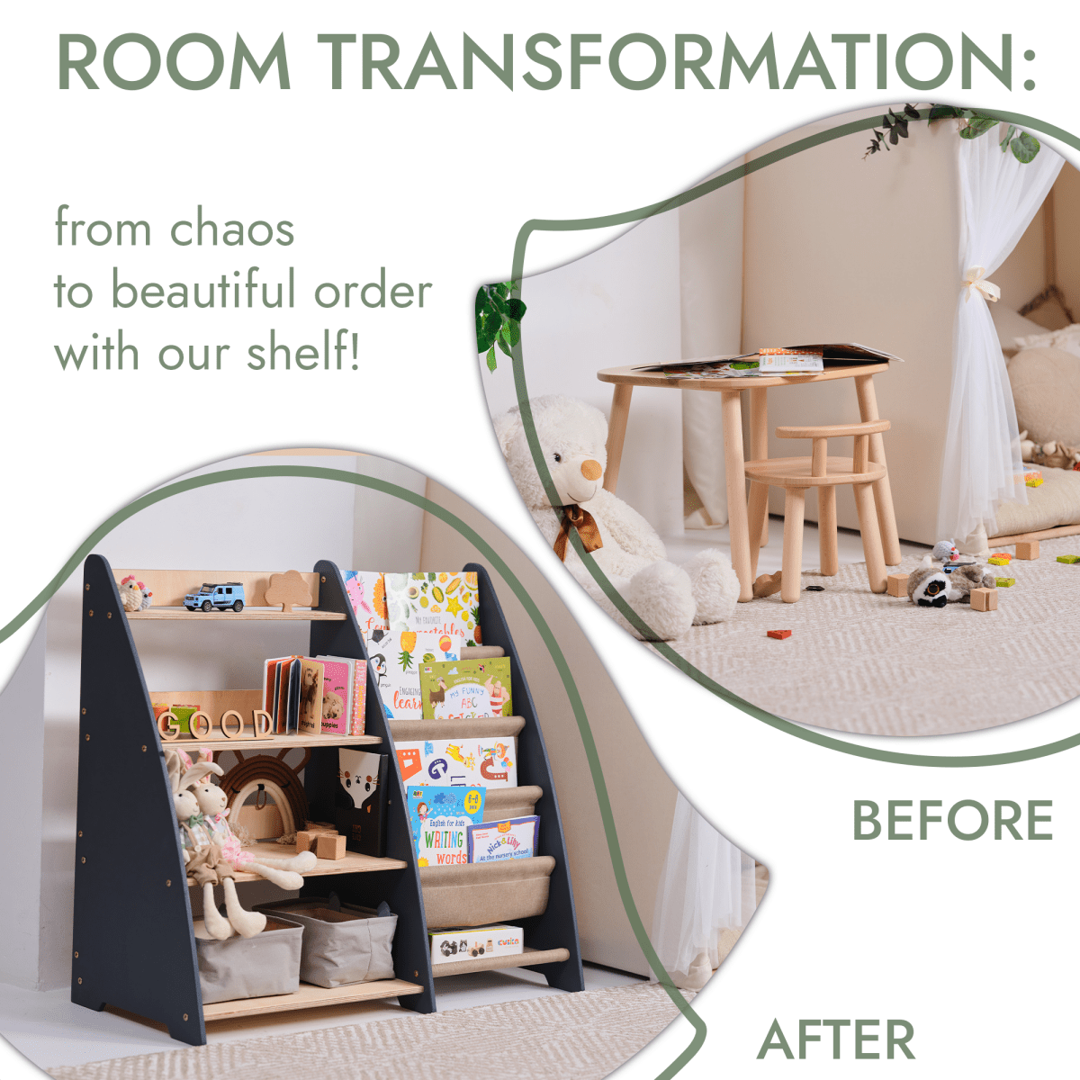 - Optimal Size: Designed at the perfect height for young children, making every book and toy easily accessible.
