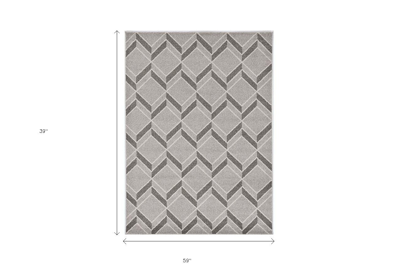 2' X 4' Green And Ivory Geometric Indoor Outdoor Area Rug