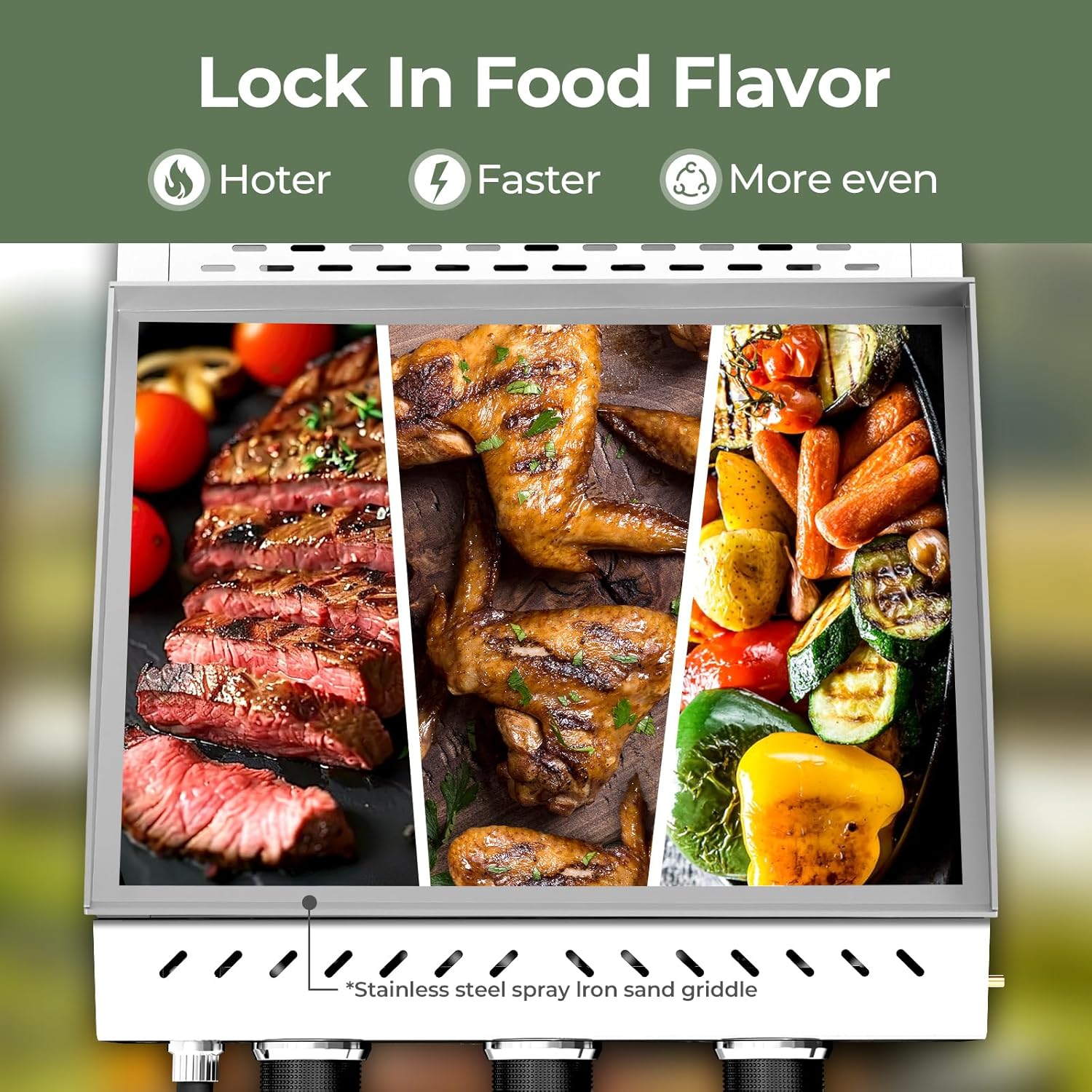 3 Burners Portable Propane Griddle,25 inch Stainless Steel Gas Grill,24,000 BTU Table Top Grill TG0130C