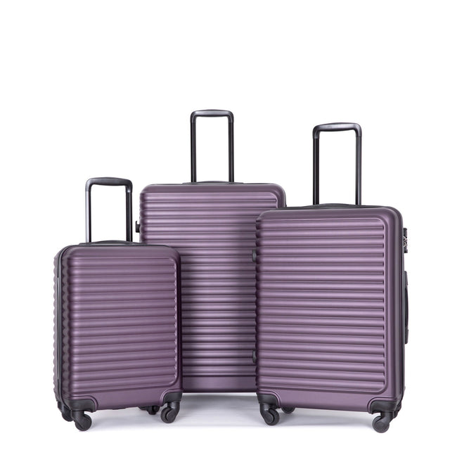 3 Piece Luggage Sets Lightweight Suitcase With Two Hooks, Spinner Wheels, Tsa Lock, (20/24/28) - Purple