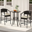 3-Piece Patio Rattan Bar Set with Tempered Glass Top for Backyard Poolside-Brown