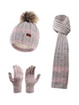 3 Pieces Winter Knit Beanie Hat Warm Scarf and Touch Screen Gloves Set Warmer Gloves Set with Fleece Lined Gray Pink