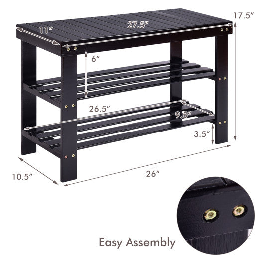 3 Tier Bamboo Bench Storage Shoe Shelf-Black