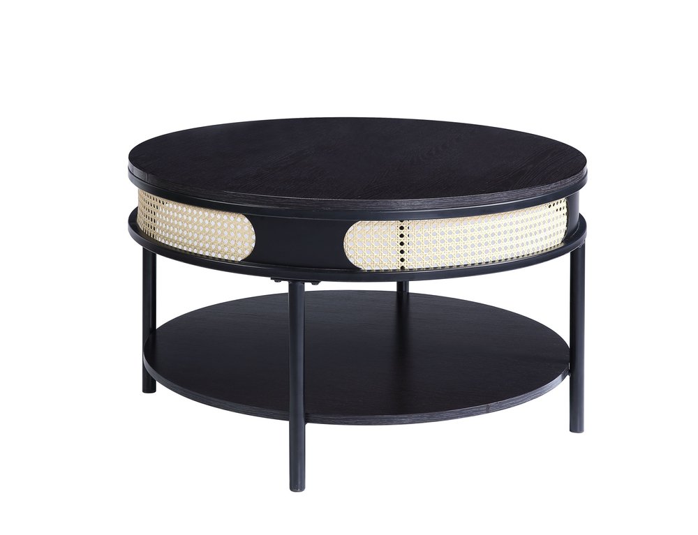 32" Black Wood And Metal Round Coffee Table With Shelf is backordered and will ship as soon as it is back in stock.