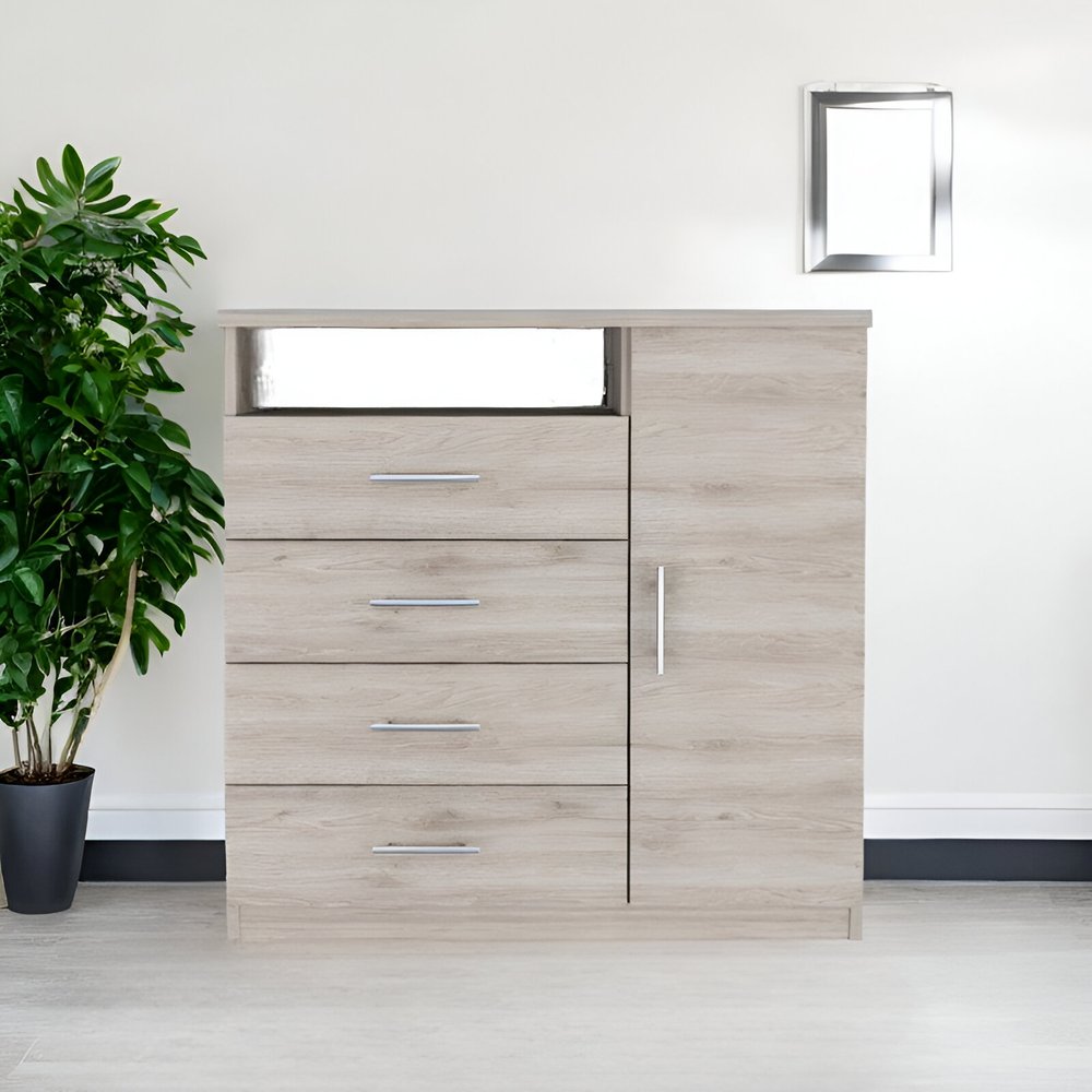 36" Light Gray Manufactured Wood Four Drawer Combo Dresser is backordered and will ship as soon as it is back in stock.