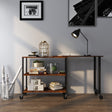 360° Rotating Sofa Side Table with Storage Shelves and Wheels-Rustic Brown