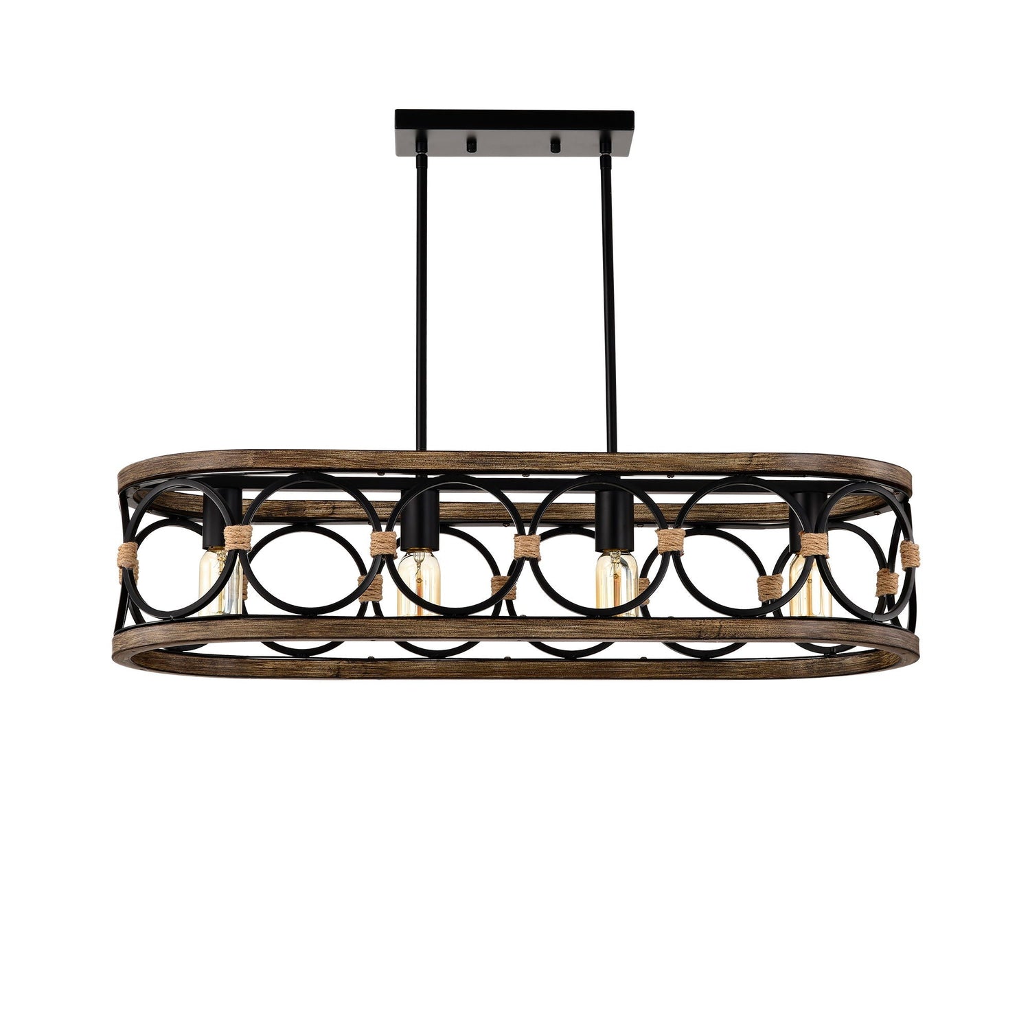 4 Light Rectangular Ellipse Pendant Lights Kitchen Island, Metal Farmhouse Kitchen Pendant Lights, Adjustable Height, Modern Industrial Chandelier For Living Room, Dining Room - Matte Black / Natural by Couch.com