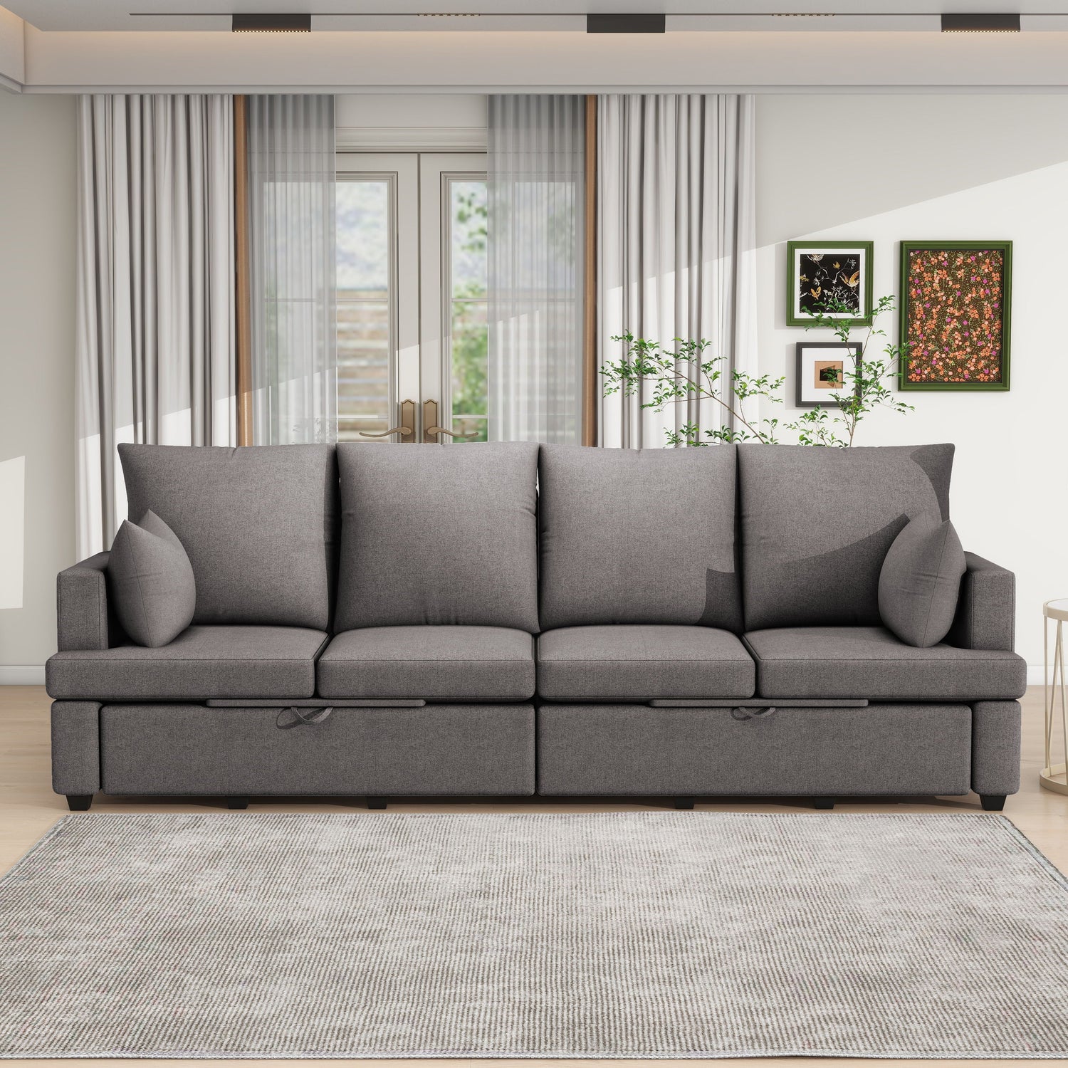 Couch.com Modern Modular Sofa, 4 Seat Chenile Sectional Couch Set With 2 Pilows Included, Freely Combinable Indoor Funiture For Living Room, Apartment, Office Dark Gray, Fabric Construction