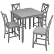 5 Piece Dining Table Set, Wooden Dining Square Table Set For 4, Counter Height Kitchen Table Set With Square Table And 4 Upholstered Chairs For Small Space - Gray