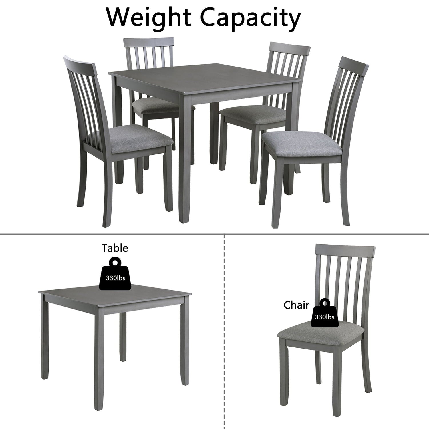 5 Piece Modern Dining Set, Square Wooden Dining Table With 4 Upholstered Chairs For Kitchen, Dining Room - Gray