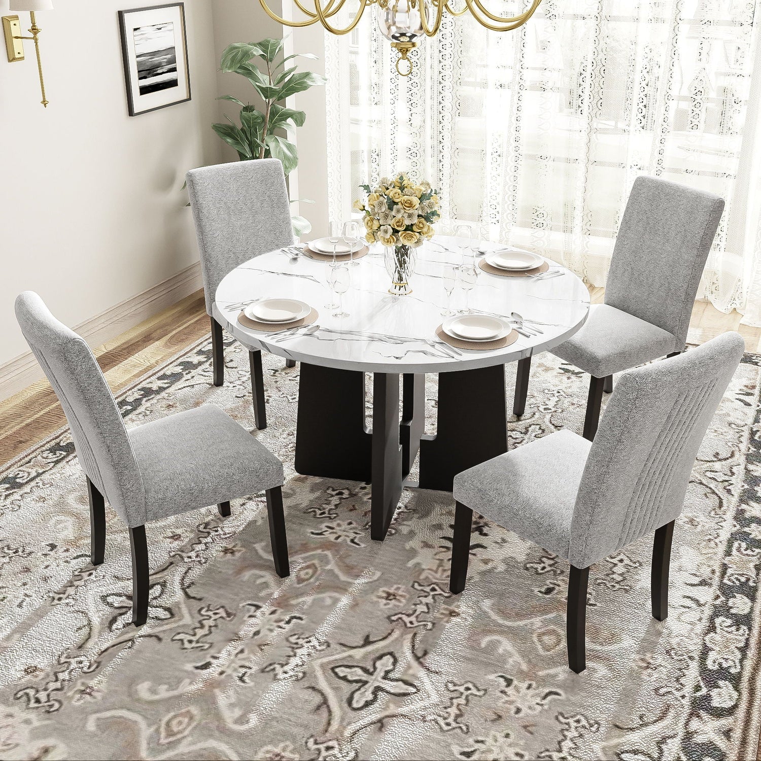5 Piece Round Dining Table Set, Dining Table And 4 Upholstered Chairs For Dining Room, Kitchen Room, Living Room - White / Gray by Couch.com