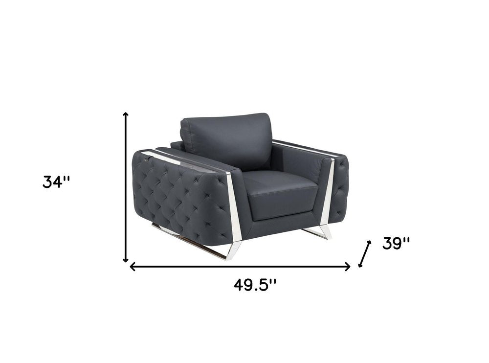 50" Dark Gray And Silver Faux Leather Tufted Club Chair