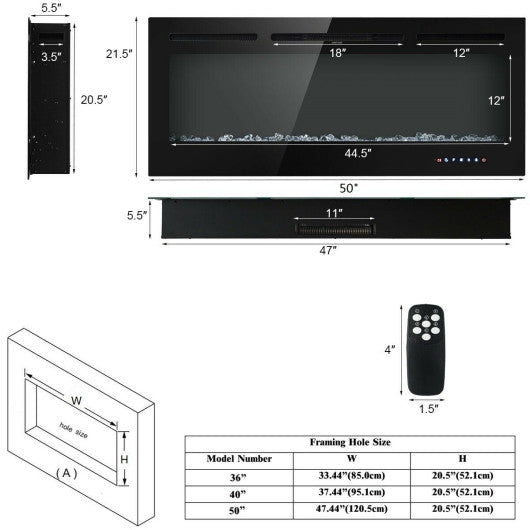 —� Wall-Mounted/Recessed Installation: Specially designed with 2 installation methods this electric fireplace can be recessed in the wall or mounted on the wall whose black frame will give the room a sleek and modern look. Only weighing 38lbs to 53lbs the fireplace is light enough to allow you to install it by using the easy-to-understand instructions.