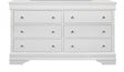 58" Metallic White Solid Wood Six Drawer Double Dresser is backordered and will ship as soon as it is back in stock.