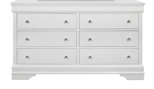 58" Metallic White Solid Wood Six Drawer Double Dresser