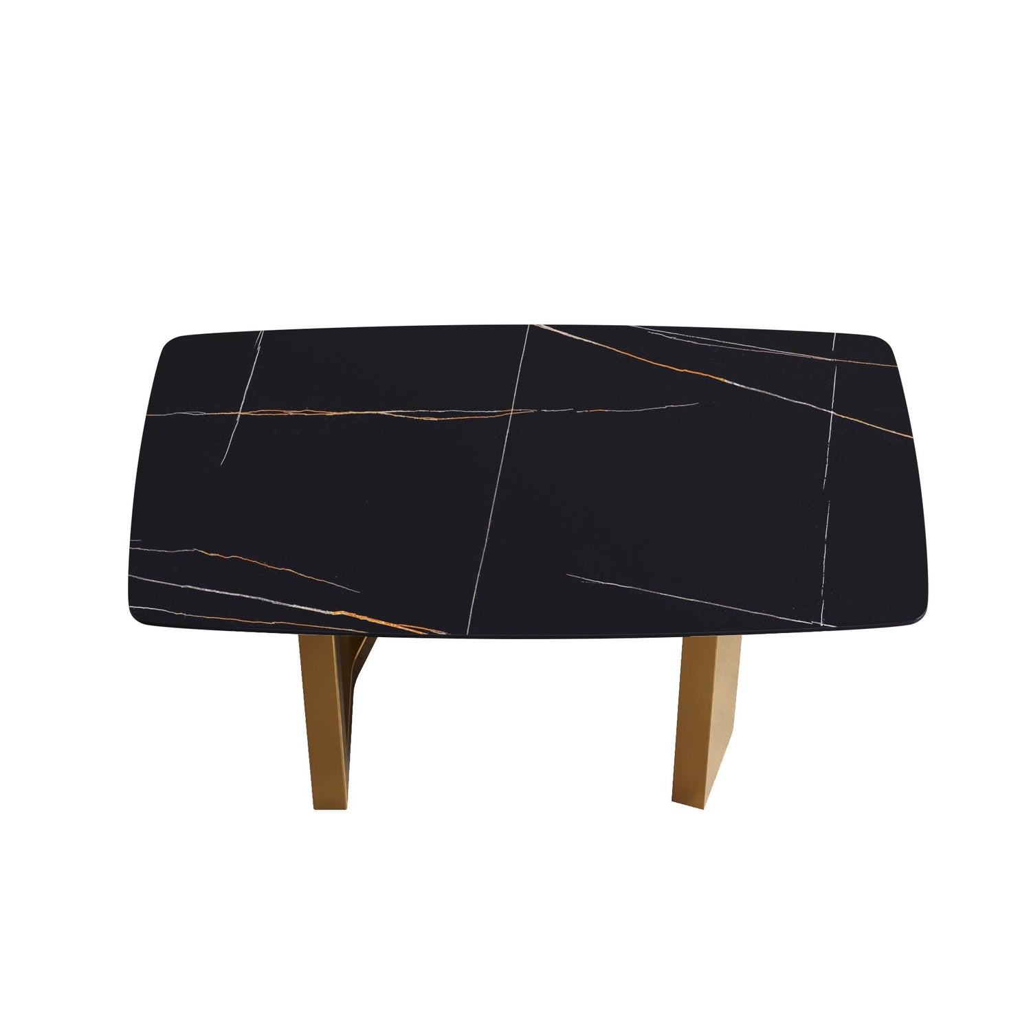 63" Artificial Stone Curved Golden Metal Leg Dining Table, 6 People - Black / Gold by Couch.com