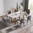 63" Modern Artificial Stone Pandora White Curved Metal Leg Dining Table, 6 People - Antique White